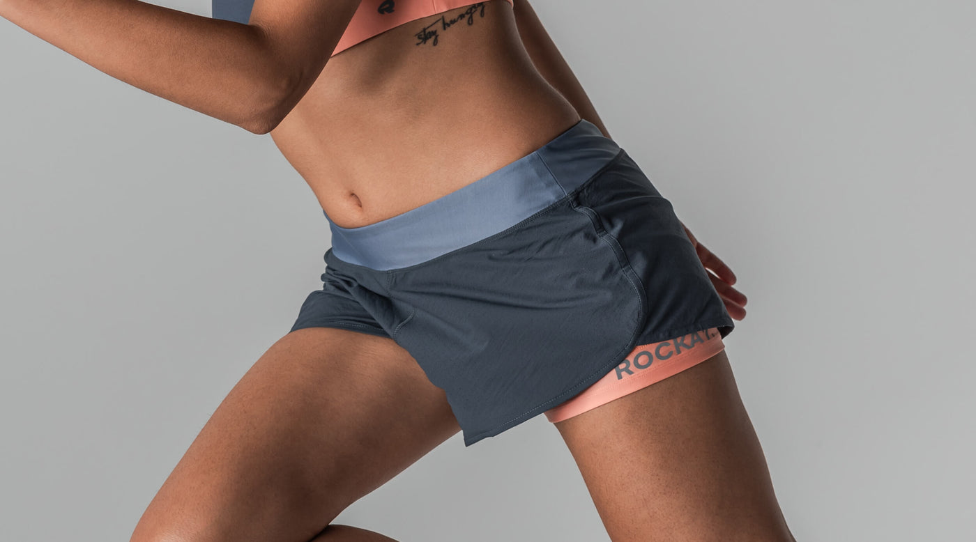 The 5" Rockay women's running Shorts deliver 2-in-1 comfort. Super lightweight and ready to perform. A blend of stretchy, recycled fabrics, with considered perforated outer, increases air flow and reduces weight for ultimate comfort - helping you to feel faster while running. Sweat-wicking inner liner and two stealth pockets ensures your possessions are secured on the go.