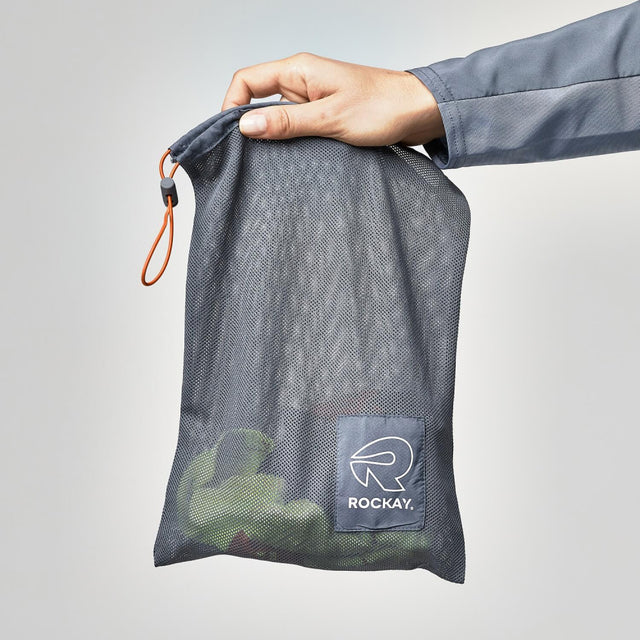 Our single-compartment Wash Bags are made of a recycled mesh material, available in both small and large - so you have the option to wash just socks or size up to fit your workout technical kit. Drawcord secured, with an additional recycled stopper, ensures everything stays in place during the wash cycle. Trim and logo details are made using upcycled Rockay production materials, fulfilling our commitment in reducing waste. With quick and easy access you'll never waste time sorting through another laundry load again with our functional Wash Bags.